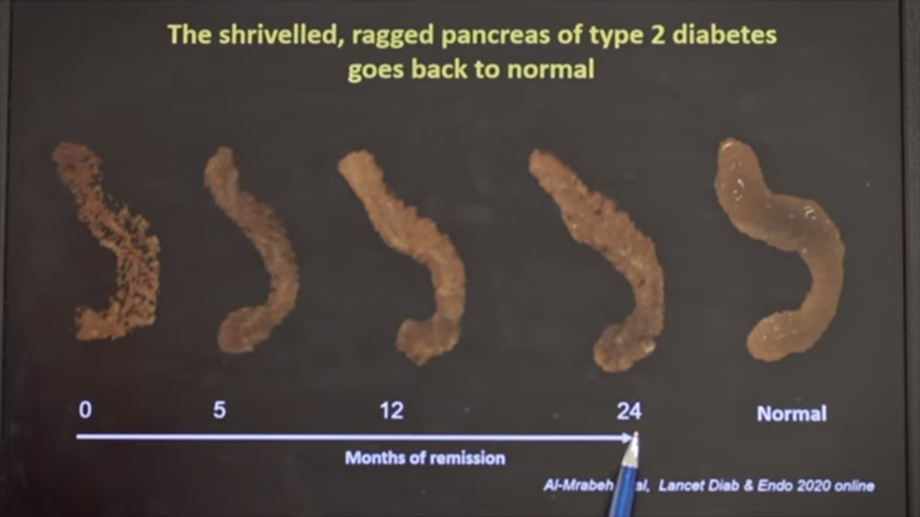Organ tubuh manusia sungguh mengagumkan, walaupun “babak belur” terdampak oleh diabetes, namun mampu memulihkan dirinya pasca dilakukannya terapi diet. Khususnya organ pankreas, walaupun sebelumnya secara fisik volumenya telah jauh menyusut, namun dengan melanjutkan pola diet menjadikan bentuk organ pankreas semakin penuh mendekati bentuk aslinya. Artinya, produksi insulin sangat menjanjikan dapat berfungsi normal sesudah tahun ke-2 pasca remisi diabetes.